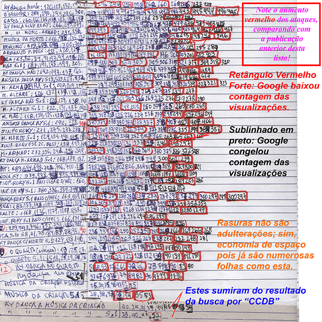 Cláudio César Dias Baptista As últimas entradas na lista da imagem acima são de hoje - note que a maioria imensa dos vídeos teve a contagem das visualizações baixada e que dois deles não aparecem nas buscas por "CCDB" via Google.