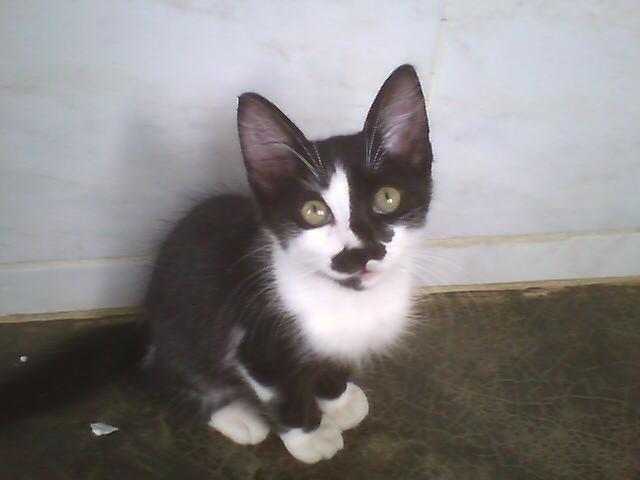 - CCDB 26-12-2008 A HISTÓRIA DE KIMÊ Kimê não é filho de Minhé. Kimê foi abandonado, mui novinho, na porta de uma loja de animais. Como era demasiado jovem para a loja poder recebê-lo e pôr no mostruário para dar grátis a quem o quisesse, uma senhora bondosa que fornece gatos a essa loja o levou para casa e cuidou até que crescesse o suficiente para ficar na loja à espera de quem o quisesse. Quando a senhora o entregou à loja foi que RDB lá o viu. Meu filho contou a Dalgiza sobre o gatinho.... e Giza foi buscá-lo na loja. Ele inda era bem bem bem pequeno (como se pode ver nas fotos de 22-11-08, acima) e, mesmo assaz bem cuidado, quase morreu de algum tipo de gripe, tendo de ser levado ao veterinário, que o conseguiu curar. Hoje vive conosco e é, de longe! o mais "inteligato" que já conheci... Somos felizes até com os incontáveis arranhões que seu treinamento para luta nos põe nas mãos, nos braços e nas pernas - embora ele se esforce em recolher as garras afiadíssimas... Entende todos os sinais de mãos, olha para aquilo que apontamos, utiliza as patas para segurar comida e terrina, transporta objetos na boca, testa coisas desconhecidas com as patas antes de meter o nariz, vem quando a gente o chama, gosta emocionadamente de nós três. Nunca vai ao pratinho de ração sem antes nos vir cumprimentar, mesmo quando já há ração nesse prato. Mostra-se extremamente grato, reconhecido mesmo, por o termos trazido para viver conosco. Talvez ele resuma em sua "vira-latice" tudo de bom que há nas raças puras. Quem sabe o preto-e-branco de sua camuflagem seja sinal de inteligência; pois não é dessa mesma cor o cão mais inteligente deste planeta, um pastor escocês? Ou será Kimê um elasto, presente geóctone descido da Laranja para a Terra nalguma noite escura, como a daquele já famoso apagão? - CCDB 25-01-2009, aniversário de minha cidade natal, a inadjetivável São Paulo.